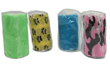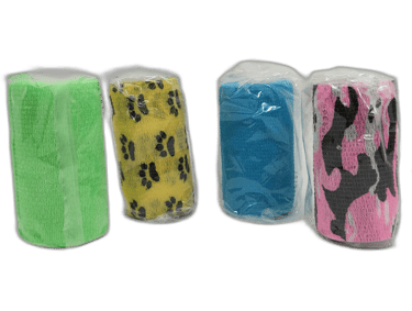 We have a large choice of cohesive and adhesive product, we have long colored bandages (10cmx4.5m). Black tape (5cmx4.5) and cleaning napkins EXTRA CLEAN or antibacterial napkins.