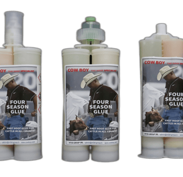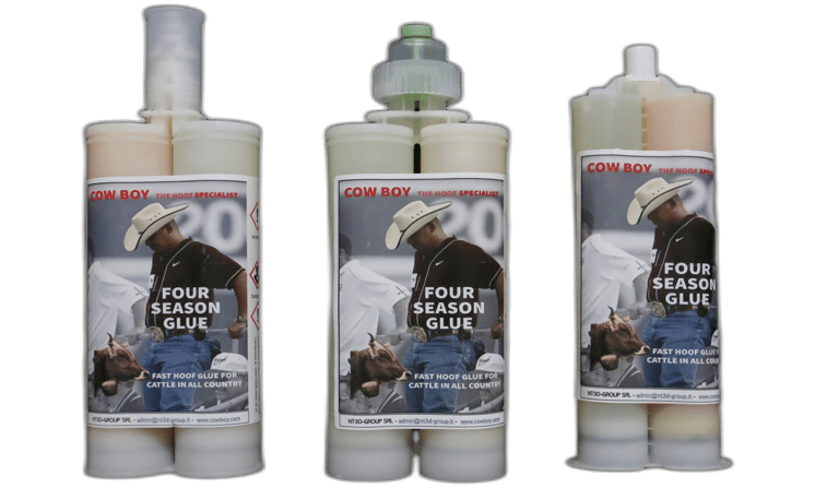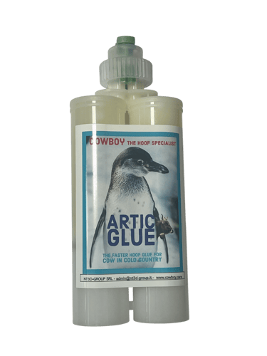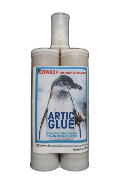 This glue is a tixotropic glue (do not slow down when applied) very good to fulfill the space in irregular shape of hoof and very fast attachment. Within few seconds. The block is fixed and after 30s-1min the foot can be released. Only for use in cold season
